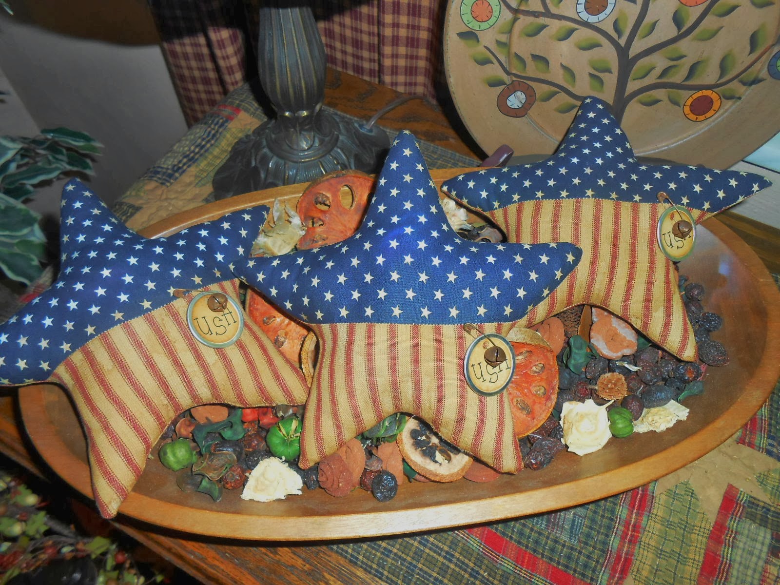 I've listed 3 new Fabric Candles on the left sidebar. Two are hanging tree ornaments and one is a bowl filler.