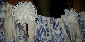 Posy Annie's dress pocket is made from stained felt with hand stitched felt posies. It is stuffed with Sweet Annie.